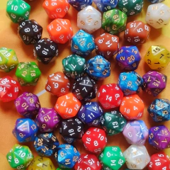 Dado de 20 caras en acrílico. Variedad de colores sólidos y con texturas.